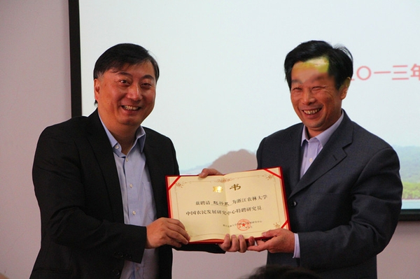 浙农林大新闻网讯 12月5日,第二期农民发展论坛暨赵兴泉特聘研究员聘任仪式在学2-402举行。应农民发展研究中心邀请,浙江省农业厅党组副书记、副厅长赵兴泉,农业厅经营管理处处长朱勇军、副处长郑娟等参加了此次论坛。副校长金佩华主持了本期论坛,经管学院院长兼中心副主任沈月琴,新农村发展研究院、后勤集团、农民中心相关负责人、师生代表等近100人参加了论坛。
