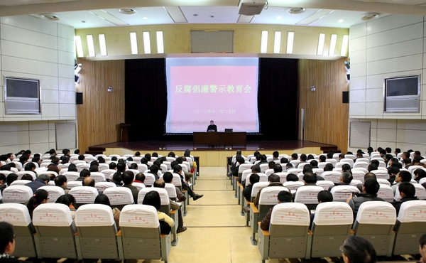 中层以上领导干部,学校纪委委员,各党委(总支、直支)纪检委员,主管(天目学院除外),校级以上重点学科、重点实验室负责人、机关工作人员、各学院(部)行政办人员,后勤集团管理干部以上人员等300余人参加了会议。
