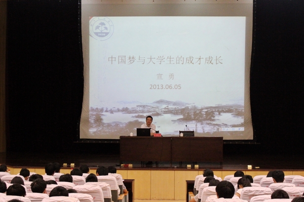 宣勇的报告分为“大国梦与大学的使命”、“中国的大学梦”、“农林梦与大学生的成才成长”三个部分。他透过人类历史上大学对社会经济发展的重大影响力,阐述了大学在实现大国梦中所发挥的特殊作用;在回顾我国建设著名大学的艰辛历程,剖析当近高等教育发展中存在的各种问题之后指出,大学应该是诞生梦想的地方,进而阐述了农林梦与大学生成才成长的关系。报告最后,宣勇道出了对农林学子的期待,他希望大学生们能够深刻领会大气的境界、深度和气势 ,能够行“天道、人道、明道”的大道,能够担“经世致用、务当世之务”的大任,胸存大志,怀抱梦想,将个人理想与祖国需要相结合,在成才成长的过程中,为实现农林梦、中国梦而努力。