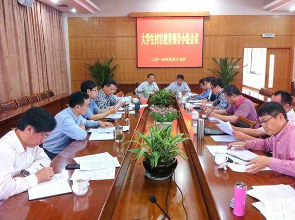 会上,学生处负责人汇报了前期大学生村官择优选聘工作的基本情况,对大学生村官工作今后的实施方案和努力方向进行了说明。与会人员对建立大学生村官教育长效培养机制相关政策进行了研讨。
