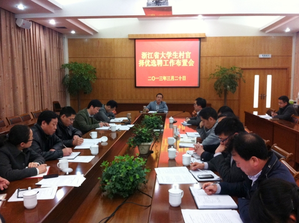浙农林大新闻网讯 3月20日下午,学校在行政楼第一会议室召开2013年浙江省大学生村官选聘工作布置会。会议由校党委副书记余杰主持,组织部、宣传部、研工部、学工部、团委及各学院党委(总支)负责人参加了会议。