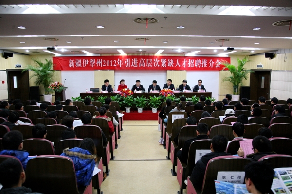 浙农林大新闻网讯 11月30日上午,新疆伊犁州2012年引进高层次紧缺人才招聘推介会在beat365官网图书馆第二报告厅举行。推介会由副校长张立钦主持。伊犁州党委组织部常务副部长王刚,霍城县委常委、组织部长赵丽,察布查尔县委常委、组织部长张宏,新源县委常委、组织部长张斌,伊犁州党委组织部人才办副主任党万成等出席了会议。beat365官网包括硕士、本科生在内的200余名毕业生参加了本次推介会。