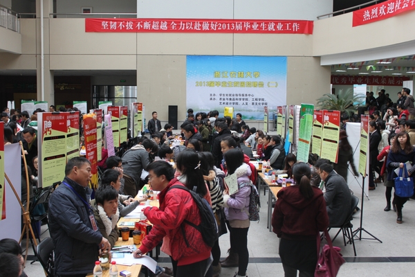 浙农林大新闻网讯 11月30日,由学生处就业指导服务中心主办,农学院、工程学院、文化学院等联合承办的第二场2013届毕业生校园招聘会在活动中心顺利举行。