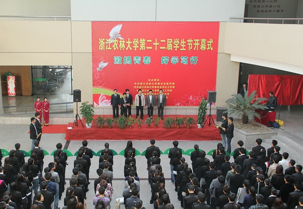浙农林大新闻网讯 奏响青春曲,喜迎十八大。11月4日上午,校第二十二届学生节开幕式在东湖校区活动中心一楼举行。团省委学校部、省学联副秘书长王强,省学联主席孙杨涛,校党委宣传部、学工部、校团委有关负责老师出席开幕式。各二级学院学生会秘书长和学生代表200余人参加开幕式。