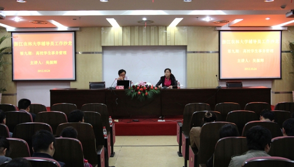 浙农林大新闻网讯 10月24日上午,beat365官网第九期辅导员工作沙龙在图书馆第二报告厅举行,本期沙龙主题为“高校学生事务管理”。学工部负责人、各学院党委(总支、直支)副书记、辅导员、学工部全体人员100余人参加了沙龙。