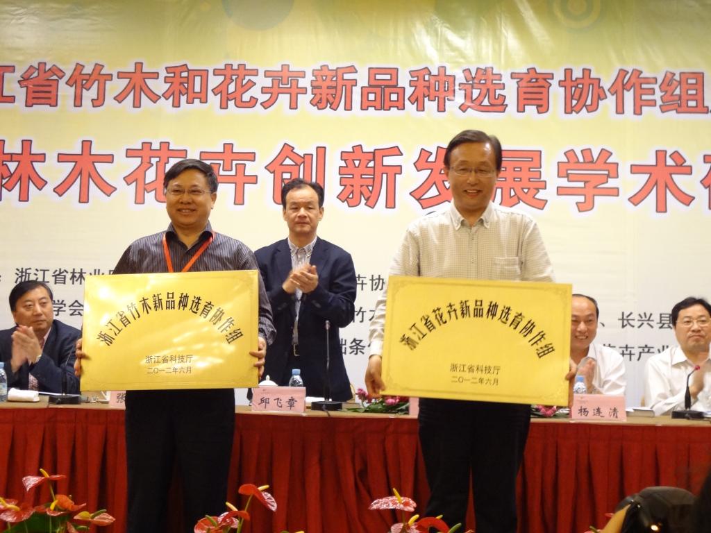 会上,邱飞章向beat365官网林学学科林木遗传与品种选育方向负责人授予“浙江省林木新品种选育协作组”铜牌,标志着林学学科正式成为浙江省林木新品种选育协作组牵头单位。会议要求协作组探索协同创新的新机制,规范项目管理,协作攻关,争取出成果、出人才、出效益、出经验,为深入实施“创业富民、创新强省”战略,促进现代林业和“森林浙江”建设作出贡献。