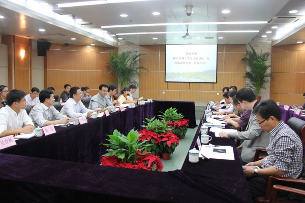 在浙江师范大学,师大党委副书记蒋国俊就师大办学情况、办学特色、思政工作队伍建设等方面作了介绍,宣传部、学工部等职能部门就校园文化建设、文明寝室创建、大学生创新创业等方面作了介绍。余杰在交流中表示,浙江师范大学在教师教育、非洲研究和儿童研究等方面享有盛誉。学校校园文化积淀深厚,学生对校园文化活动的认识水平和参与性都很高,“大学生电影节”等一系列品牌活动影响深远;发展性学生工作体系、三“为”工作理念和思政工作“六个一”工程成效显著。