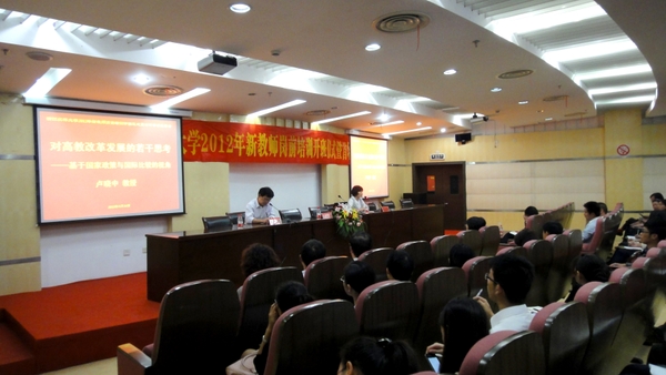 浙农林大新闻网讯 9月16日下午,2012年新教师岗前培训开班仪式暨首场专家报告会在图书馆小报告厅顺利举行。华南师范大学教育科学学院院长、教授、博士生导师卢晓中,人事处、教务处、教师教学能力培训中心、各教学单位有关负责人、新进教师及首期研修班教师近200人参加了活动。开班仪式由教务处处长邵千钧主持。