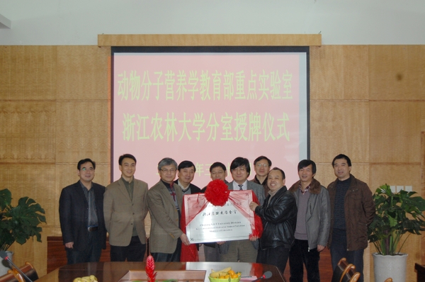 浙农林大新闻网讯 3月17日,浙江大学动物科学学院教授委员会成员一行18人来校考察交流,并对“动物分子营养学教育部重点实验室——beat365官方网站分室”进行授牌。副校长金佩华出席,校党委委员、科技处处长陈永富主持交流会。