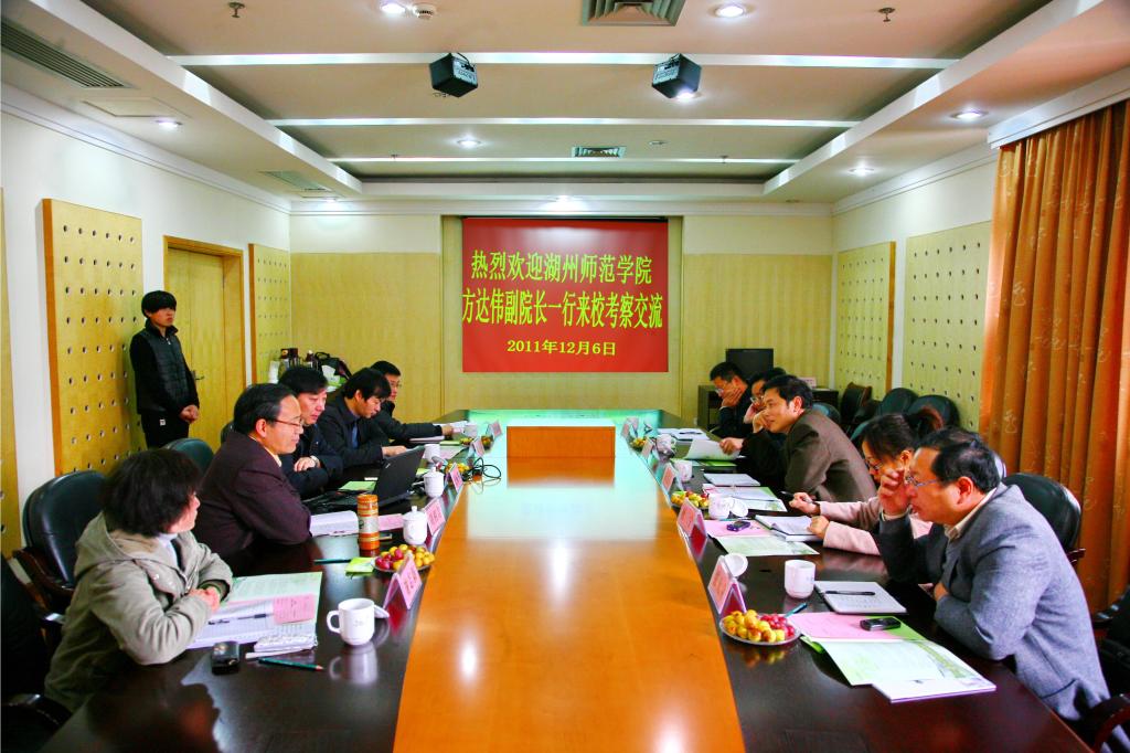 浙农林大新闻网讯 12月6日上午,湖州师范学院副院长方达伟一行5人来校考察交流,副校长金佩华,校党委委员、科技处处长陈永富与方达伟一行进行了座谈。