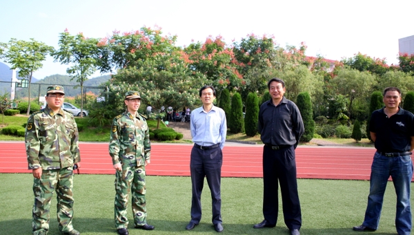 在训练场上,宣裕方询问了军训教官的伙食情况、住宿条件以及在训练过程中遇到的问题和困难,对教官为军训付出的辛勤劳动表示肯定与感谢。同时,他希望教官在军训中严格训练、严格要求,配合学校培养当代大学生不怕吃苦、不畏困难的精神和良好的学习生活习惯,为适应今后的学习、工作打下坚实的基础。军训教官们感谢学校的信任与支持,表示一定坚持科学的训练方法,争取最好的训练效果。