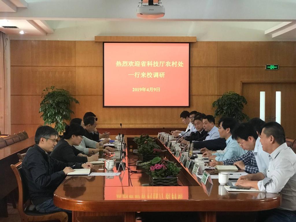 4月9日,省科技厅农村处处长钱玉红一行来校,专题调研2020年省农业重点研发项目指南。校党委书记周国模会见钱玉红一行。副校长金佩华,科技处负责人、自然科学类学院负责人参加调研座谈会。
