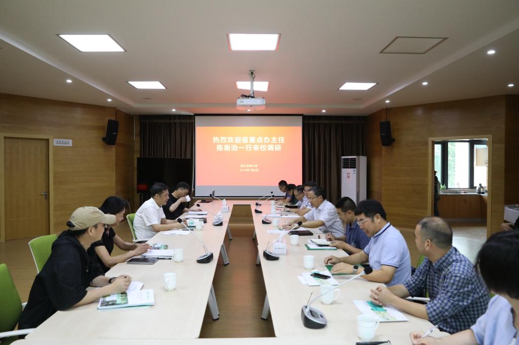 7月9日,省重点建设领导小组办公室主任陈衡治率调研组来校开展“三服务”活动,指导省部共建亚热带森林培育国家重点实验室建设工程,并就“未来社区”建设进行座谈调研。副校长胡祖吉陪同调研,建管处、园林学院、园林设计院相关负责人和专家参加座谈会。