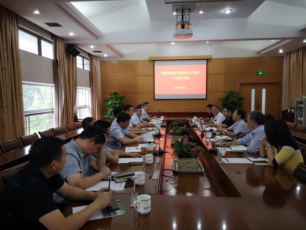 9月4日,安徽省黄山市休宁县委书记卢邦生,县委常委、组织部部长季必俊一行来校调研,临安区委常委、组织部部长吴洁静陪同调研。校党委副书记冯尚申主持交流座谈会,校办、组织部、社会合作处、文法学院相关负责人参加座谈。
