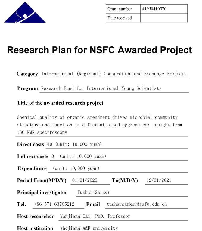 近日,国家自然科学基金委员会(NSFC)公布了2019年度国家自然科学基金评选结果。beat365官网环境与资源学院外籍博士后TusharSarker主持的“Chemicalqualityof organic amendment drives microbial community structure and function in different sized aggregates: Insights from 13C-NMR spectroscopy”项目获得立项,获批经费40万元。这是beat365官网首次获批的外国青年学者研究基金项目,取得了beat365官网在该项目类型上零的突破。