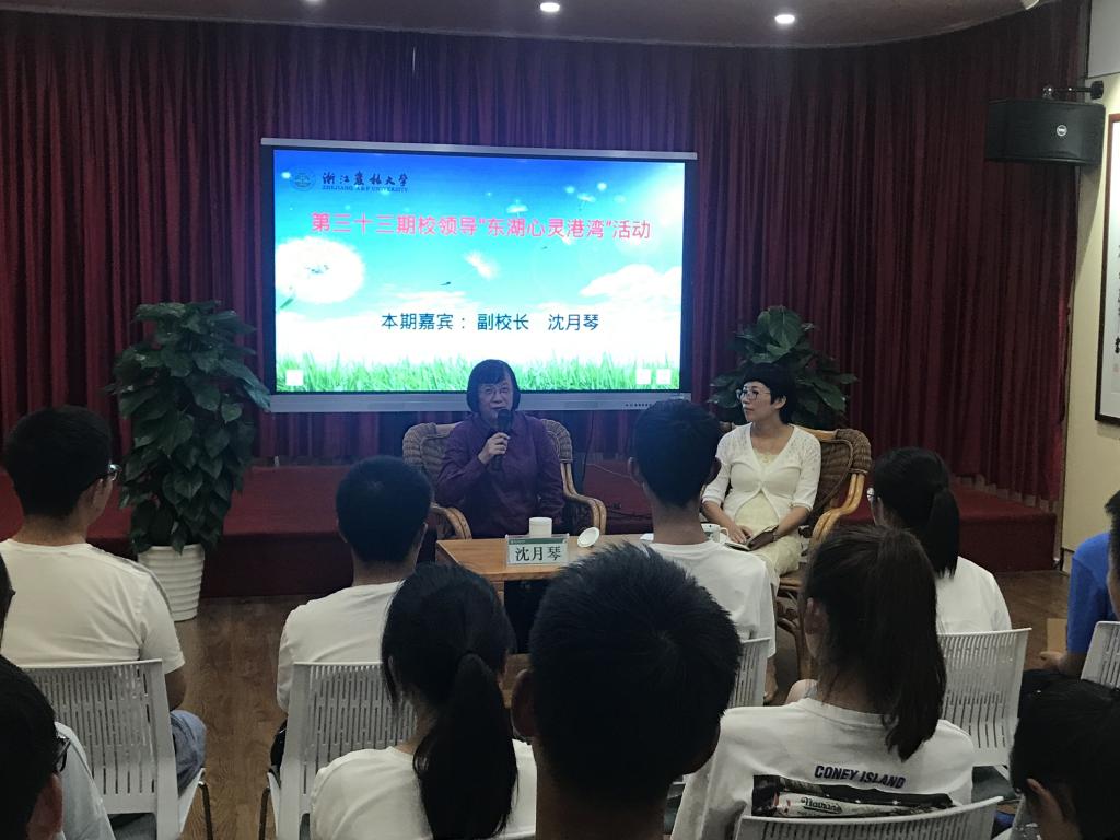 9月27日晚,副校长沈月琴教授作客校领导“东湖心灵港湾”活动,与33位来自各学院的学生代表面对面进行交流,听学生诉求,解答学生成长中的困惑。