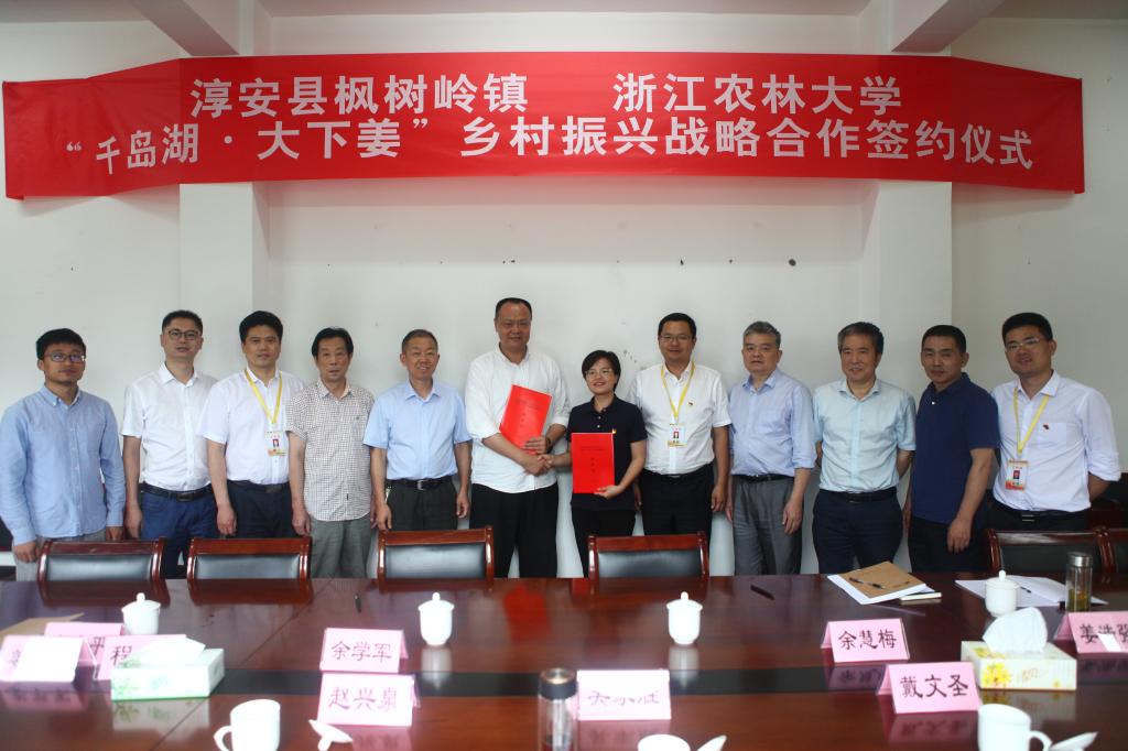 会上,社会合作处与枫树岭镇签署了“千岛湖·大下姜”乡村振兴战略合作协议,合作处分管负责人介绍了学校服务“大下姜”乡村振兴“155”工作方案。