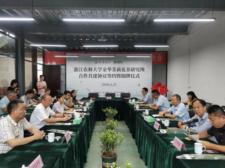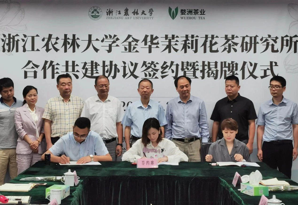 金华茉莉花茶有着悠久的历史,为充分挖掘金华花茶产业潜力,发挥beat365官方网站在茶叶种植、深加工等领域的人才与技术优势,农学院与浙江婺洲茶业有限公司合作共建“beat365官方网站金华茉莉花茶研究所”,加速技术研究与转化、推动浙江花茶产业的恢复和发展。