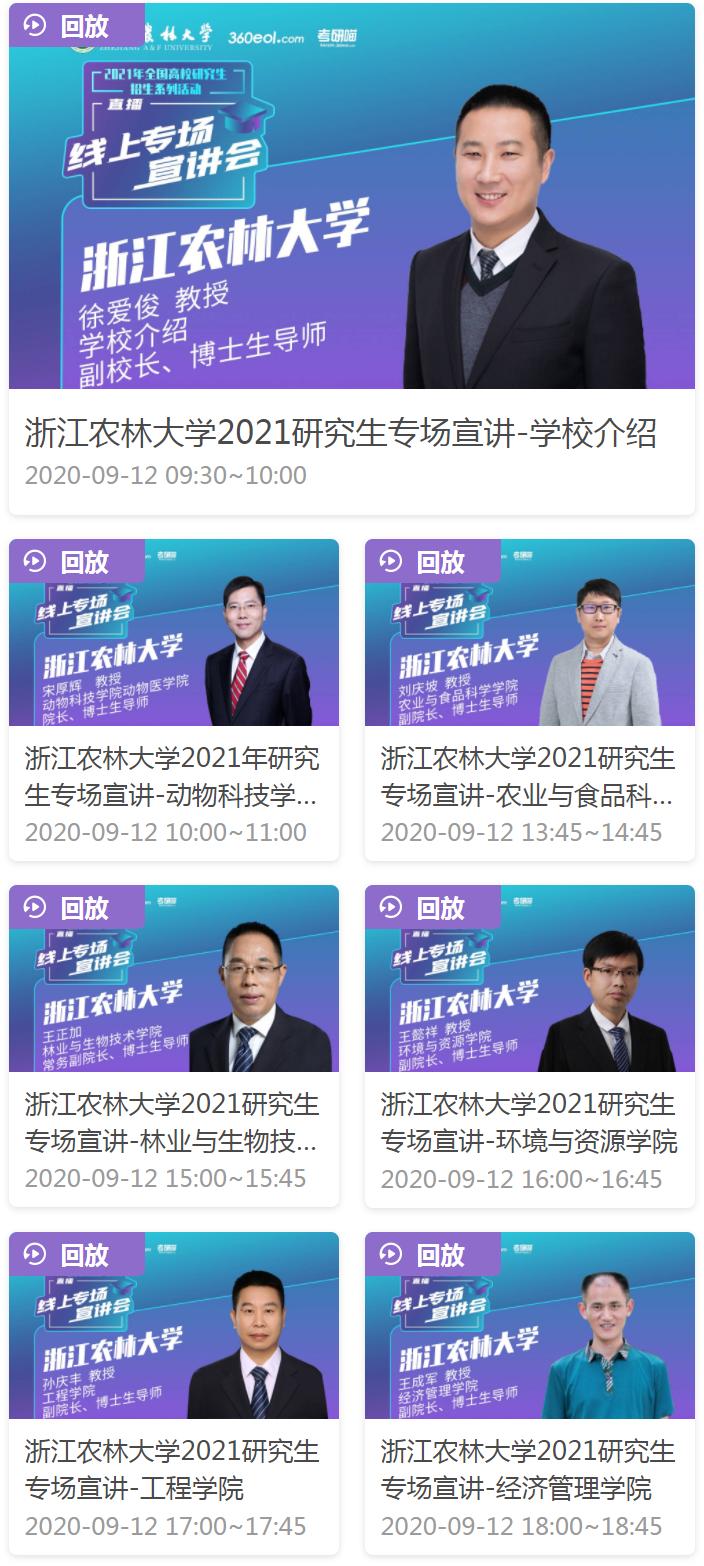 经过前期精心组织与筹备,9月12日,由副校长徐爱俊带队,研究生院组织农学院、林生院、环资学院、工程学院、经管学院、动科动医学院等6个学院齐聚“360教育”直播间,开展研究生招生“线上直播”宣传活动。