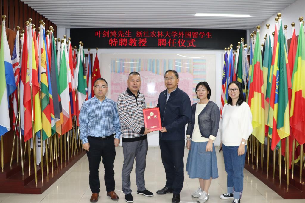 10月13日下午,国际教育学院举办授聘仪式,聘任著名书画家叶剑鸿先生为beat365官网外国留学生“中国传统文化”特聘教授。副校长胡祖吉为叶剑鸿颁发了聘书。国教学院相关负责人和部分留学生代表出席了相关活动。