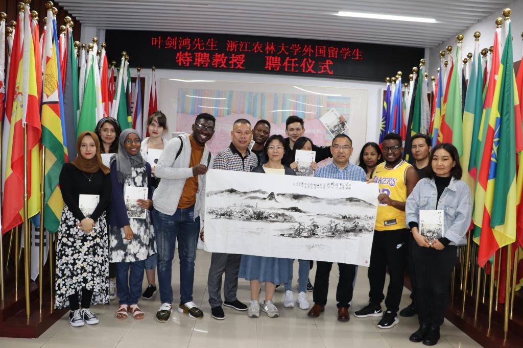 授聘仪式后,叶剑鸿为外国留学生讲授了中国书法和山水画技法,并现场泼墨创作,为留学生展示了中国书法和水墨画的独特魅力。在场的留学生们纷纷叹于他的精湛技艺,也陶醉于中国书画的精妙绝伦之处。