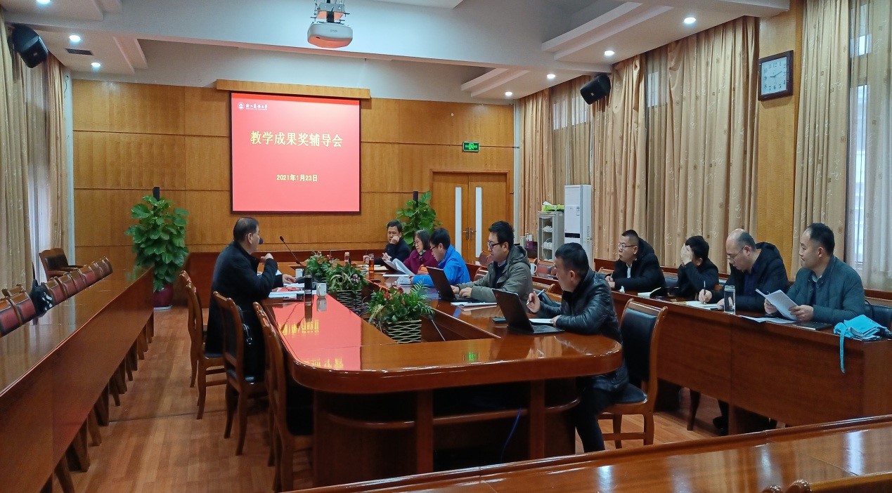 1月23日,学校举行教学成果奖辅导会,对前期评审出的15项校级教学成果一等奖项目进行“一对一”辅导。副校长沈月琴出席会议。