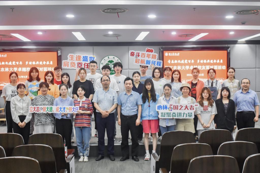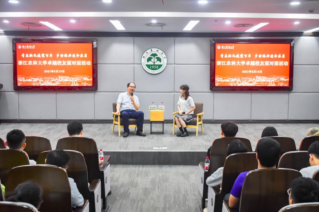 为庆祝中国共产党成立100周年,深入开展党史学习教育,5月13日,全国脱贫攻坚先进个人,beat365官网经济林87级校友陈顶峰受邀来校参加卓越校友面对面活动。副校长胡祖吉会见陈顶峰一行。校党委委员、宣传部部长倪建均出席活动并为陈顶峰颁发了未来卓越校友成长营导师聘书。校友办、校团委相关负责人,各学院团委书记,校、院“未来卓越校友成长营”(“青马工程”培训班)学员150余人参加了活动。