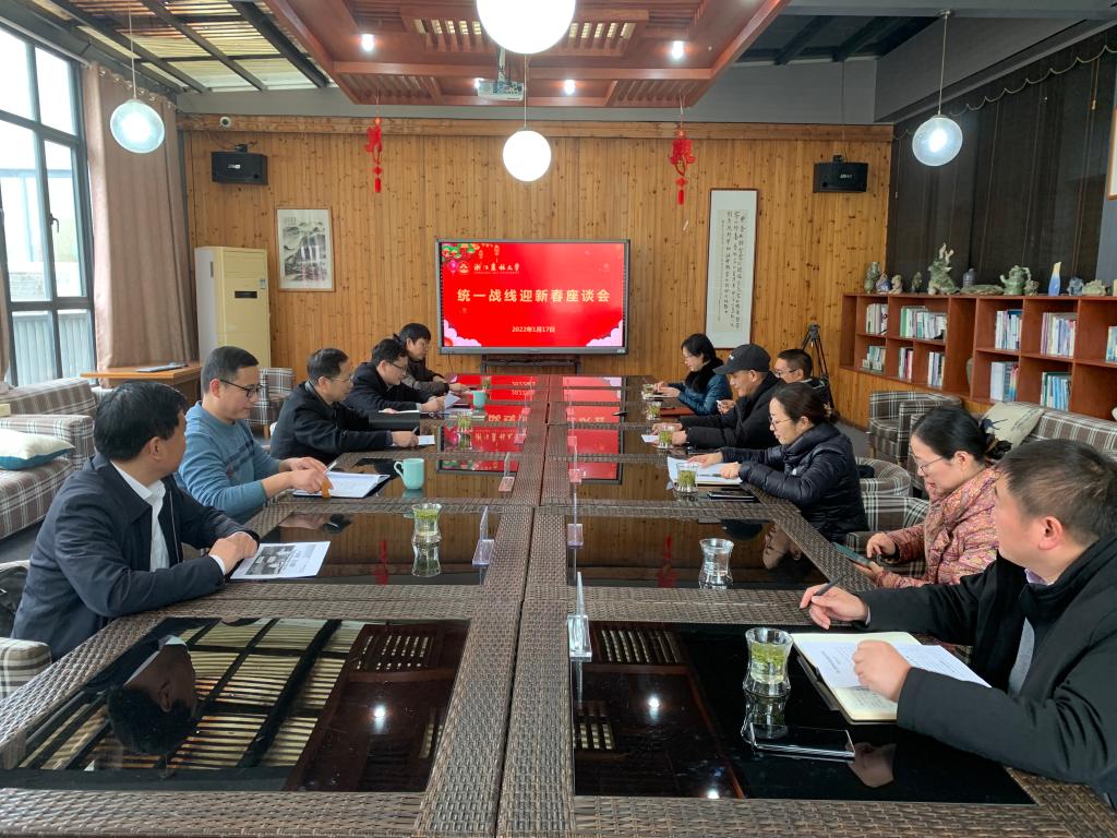 1月17日,学校召开统一战线迎新春座谈会。校党委副书记冯尚申出席会议并讲话。会议由校党委委员,组织部、统战部部长缪鲁加主持。