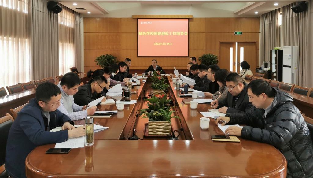 2月28日下午,学校召开绿色学校创建迎检工作部署会。会议由副校长胡祖吉主持,绿色学校创建领导小组全体成员单位负责人参会。