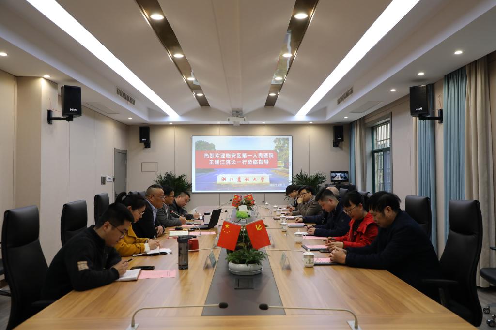 3月1日,杭州市临安区第一人民医院院长王建江一行来beat365官网考察交流。副校长胡祖吉接待了考察组一行。校公管、后勤服务中心相关人员陪同交流。