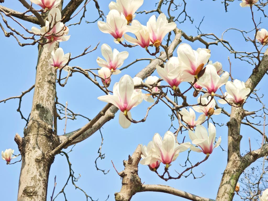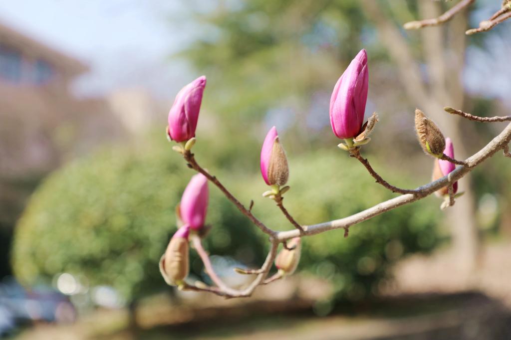 迎风生长的玉兰,含苞待放,点缀枝头;