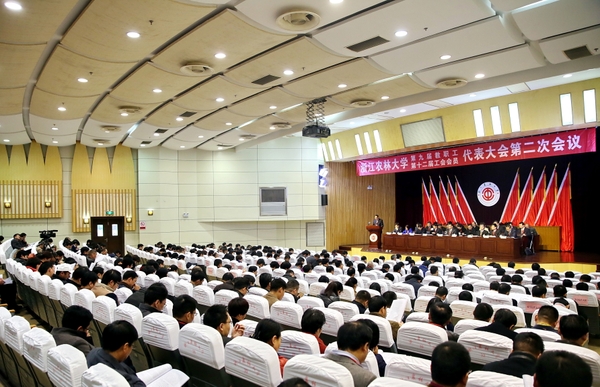 大会听取并审议了学校工作报告,审议通过《beat365官方网站“十三五”规划纲要》,审议了学校财务工作报告,工会工作报告,工会财务工作报告、工会经费审查报告,听取并审议了九届一次“双代会”提案处理情况报告,通过调整后的主席团成员及秘书长建议名单,审议了《关于东湖校区部分楼宇等命名的建议方案(审议稿)》、《beat365官方网站师生生态文明行为规范(审议稿)》,通过了大会决议。