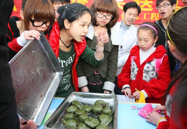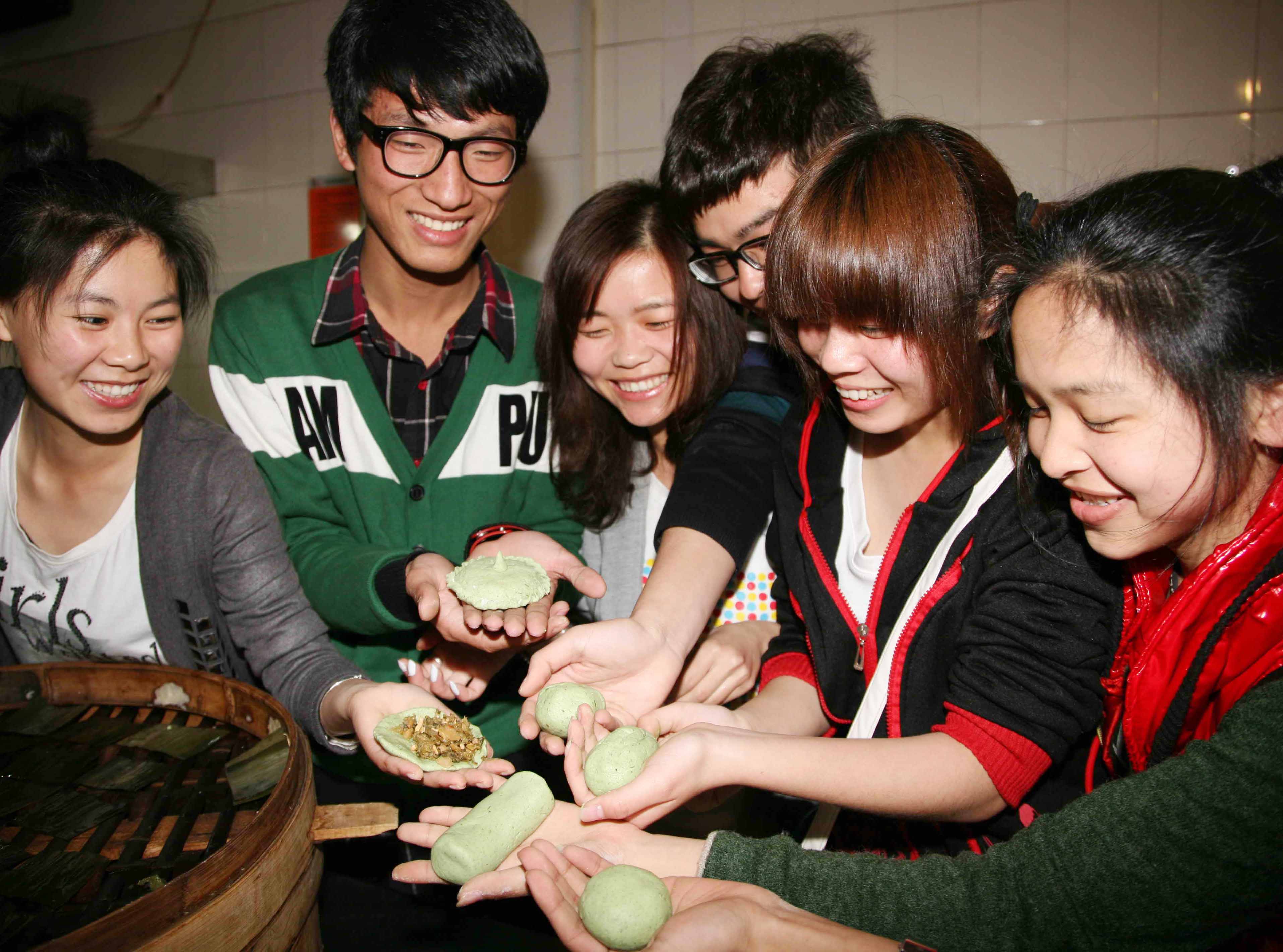 日前,电子信息105班的学生,在学校食堂点心师的指导下学做清明馃,并把自己亲手制作、蒸熟的清明馃,赠送给学校周边的群众、儿童品尝,一起感受传统文化、传承民间美食的制作工艺。
