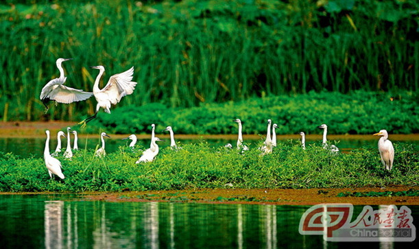 微山县逐步加大对微山湖水污染防治的力度,水质逐步改善,吸引众多鸟类在此栖息繁殖。当曾经重点污染的河流实现“条条有鱼”时,带给人们的不仅仅是水生态流域治理的成功,更多的是人与自然如何和谐相处、科学发展的启迪。