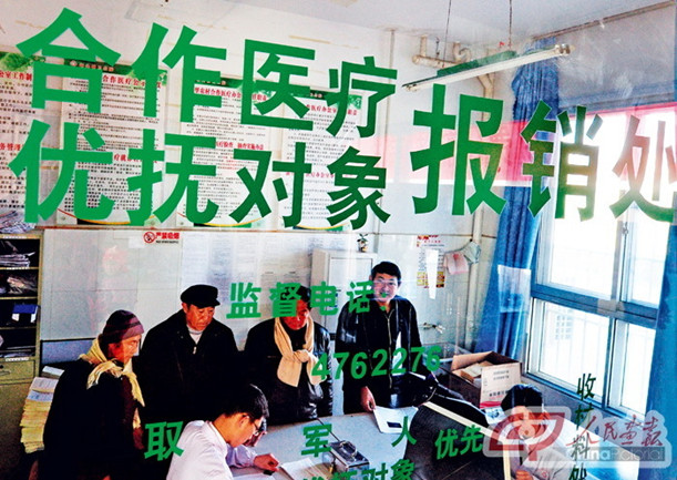 2011年3月4日,山东邹平县码头镇村民在新农合医药费报销处报销。中国新农合制度框架已基本建立,管理体制和运行机制日趋完善,运行平稳。2011年,全国参合人口8.32亿,参合率97.48%。新农合制度产生了“农民得健康、卫生得发展、政府得民心、社会得和谐”的良好效应。