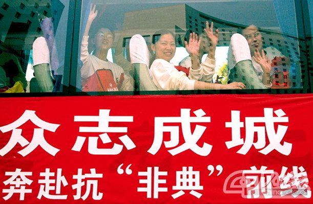 2003年春,北京,医护人员奔赴抗击“非典”的前线。在抗击非典的关键时刻,中共中央总书记、国家主席胡锦涛向全党和全国人民发出号召:“我们要大力弘扬万众一心、众志成城,团结互助、和衷共济,迎难而上、敢于胜利的精神。”这二十四字精神,是对人民群众抗击非典伟大精神的精辟概括,是对民族精神的新的丰富,是鼓舞全党和全国人民夺取抗击非典斗争胜利的强大动力。一场没有硝烟的特殊战斗,进入攻坚阶段;一座抗击非典的伟大长城,巍然矗立起来。