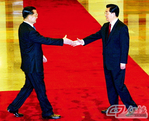2005年4月29日下午,中共中央总书记胡锦涛与应邀前来访问的中国国民党主席连战微笑着伸出右手,紧紧地握在一起。这一握手,跨过了台湾海峡、穿越了60年风雨,掀开了两岸关系的崭新一页。胡锦涛总书记与连战主席的会谈以及两党共同发布的“两岸和平发展共同愿景”,奠定了双方合作的政治基础,开拓了两岸关系和平发展的新局面。七年来,两岸双方基于坚持“九二共识”、反对“台独”的共同认知,搁置争议,求同存异,追求双赢,两岸关系发生了深刻变化。特别是2008年5月以来,通过两党、两岸双方和两岸同胞共同努力,台海局势发生了历史性转折,全面、直接、双向“三通”及海空直航得以实现,海峡两岸经济合作框架协议(ECFA)正式签署,两岸文化交流日益频繁,2011年大陆居民赴台旅游超过125万人次,开拓了两岸关系和平发展的新局面,为两岸同胞带来福祉。