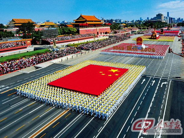 2009年10月1日,北京天安门广场举行国庆60周年盛大阅兵和群众游行。这是新中国的第14次国庆阅兵,也是迈入新世纪的中国第一次举行盛大国庆阅兵。长安街上,14个徒步方队、30个装备方队和12个空中梯队,100%中国自主研制的装备,向世人展示了新中国60年强军之路。十万群众、六十辆彩车组成了36个游行方阵,描绘出祖国大地新美的图画。