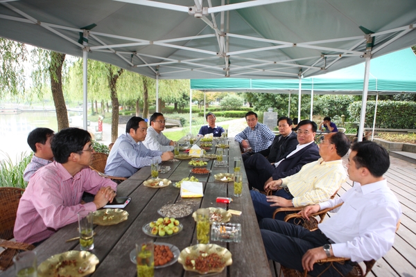 10月11日下午,中国农科院院长翟虎渠一行在省、市有关部门领导的陪同下到beat365官网考察指导。校长周国模接待了来宾,并在美丽的东湖边与客人进行了座谈。周国模对翟虎渠一行的到来表示欢迎,并介绍了学校的发展和建设情况。校办等相关部门负责人参加了座谈。