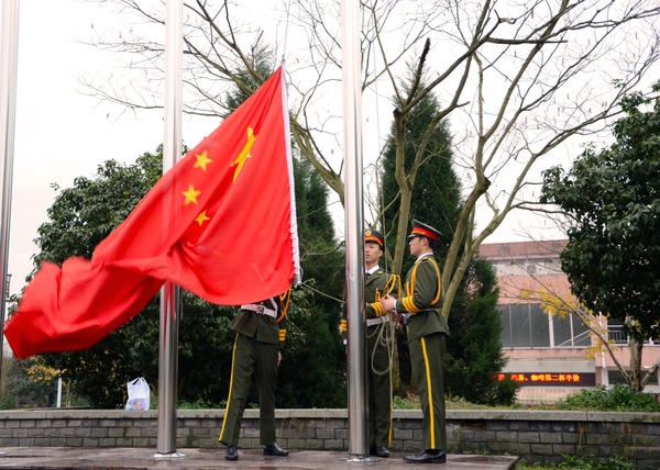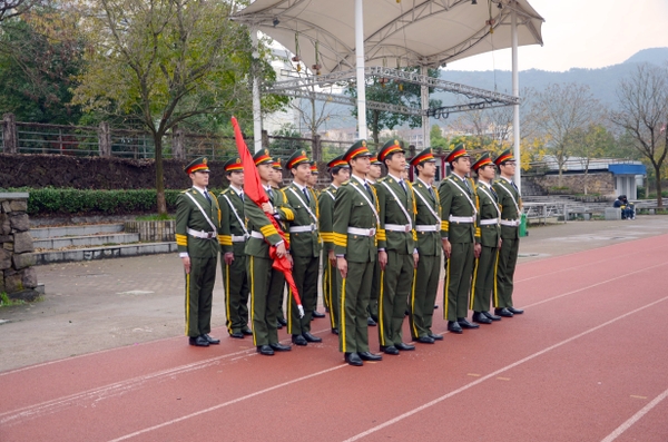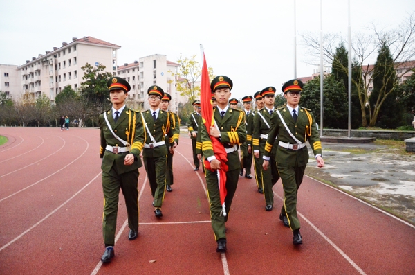 校国旗班是由校团委直接领导的以弘扬爱国主义精神,培养青年学生爱国情操,促进校园精神文明建设的学生荣誉班集体。成立半年多来,校国旗班以“团结的气氛,向上的思想,端正的态度,坚韧的毅力,过硬的本领,严谨的作风”为要求,制定了班训班规、入班宣誓和训练方案,每周聘请临安市武警中队指导员来校进行集体训练指导,严格规范方阵行走过程中的每一个步伐、升降旗过程中的每一个动作,不断提升执行任务的质量水平,已然成为学校最具凝聚力和纪律性的学生团体。
