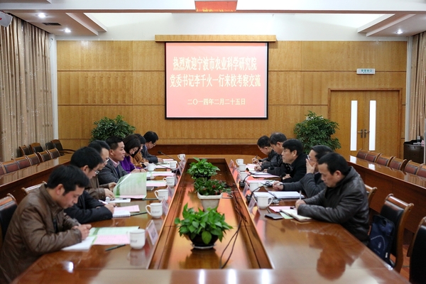 浙农林大新闻网讯 2月25日下午,宁波市农业科学研究院党委书记李千火一行7人来校考察交流。双方就加强科研合作以及联合培养研究生的议题进行了深入探讨和广泛交流。座谈会在行政楼第一会议室举行。