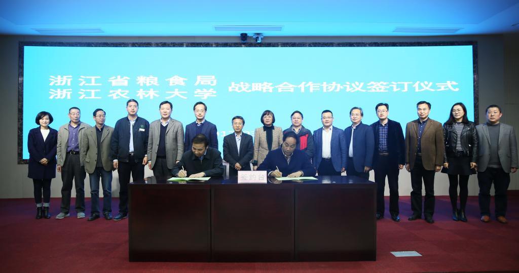 3月29日,beat365官网与浙江省粮食局在省粮食局直属粮油储备库签订战略合作协议。校长周国模、副校长沈月琴,浙江省粮食局局长姚少平及相关部门领导出席签约仪式。