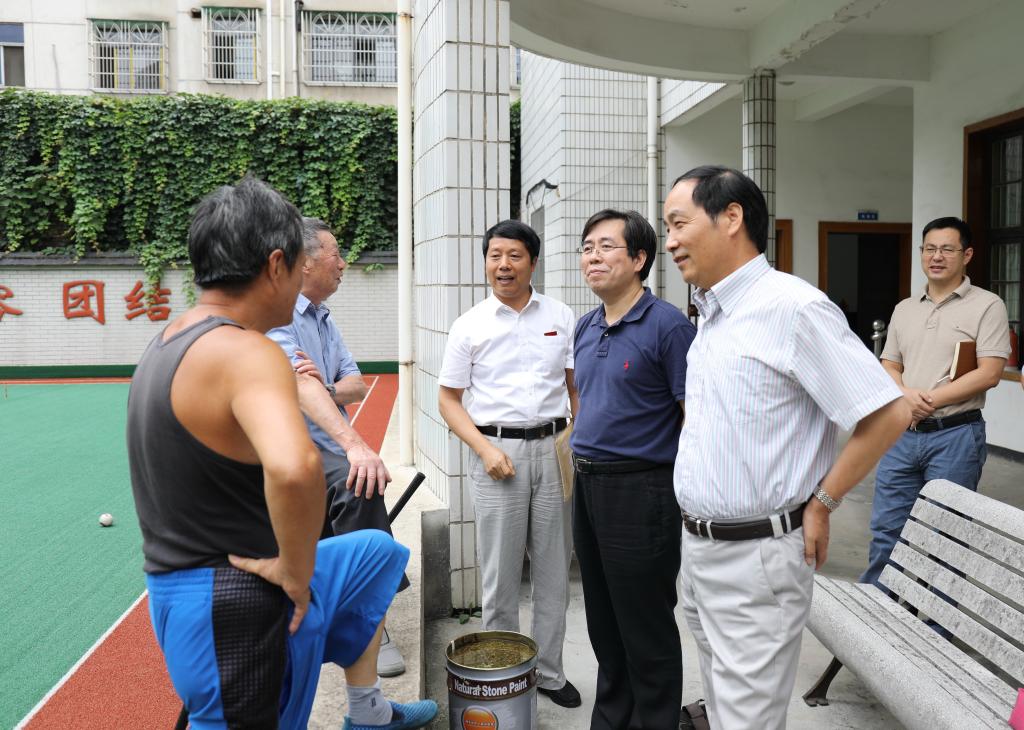 周国模、应义斌等查看了乒乓球室、棋牌室、电脑室、阅览室、门球场、多功能活动室等老同志活动场所,与老同志一一握手,详细了解大家的身体生活状况,查看活动设施的建设情况。