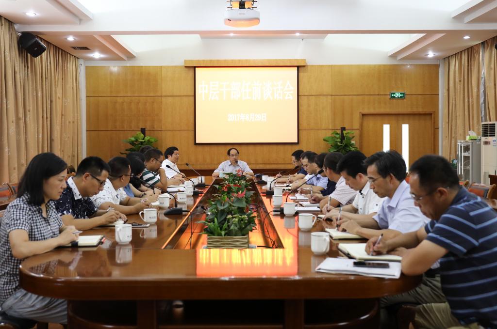 8月29日下午,校党委召开中层干部任前谈话会,校党委书记周国模主持会议并讲话。校党委副书记方伟,校党委委员、组织部部长童晓晖及新提任中层干部参加会议。