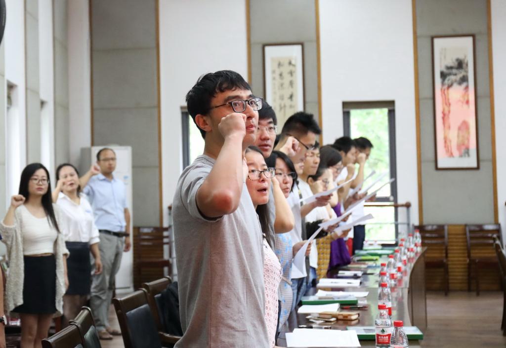 9月1日上午,全校59位新教师在智能实验楼会议室庄严宣誓:“忠诚党的教育事业,牢记立德树人神圣使命……”,这是学校为今年新进教师开展入职培训仪式上的一幕。