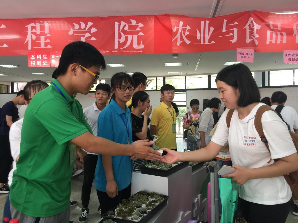 每一个学院都为新生们准备最好的入学礼物:工程学院准备了刨切微薄竹制作的明信片,还专为新生设置了“时光慢递”;农业与食品科学学院给新生们准备了由高年级学长精心培育的多肉植物;文化学院给舟车劳顿的新生及其家长们奉上了第一杯茶;信息工程学院精心打造了富有互联网特色的照片墙;林生院自制了竹制书签,外国语学院为新生们量身定制了护照……
