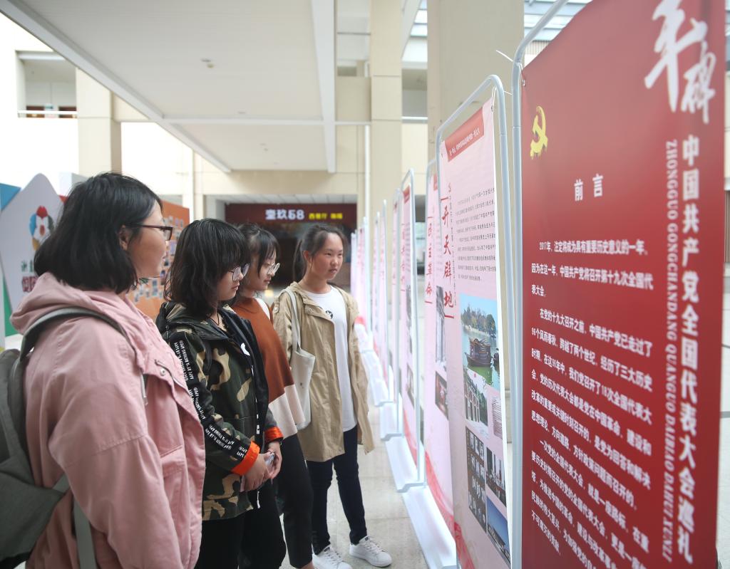 党的十九大召开在即,连日来,在校党委的积极部署下,各级党组织、群团组织认真谋划,精心准备,丰富形式,创新载体,通过大型书画展、宣传橱窗展、系列文艺活动等形式,喜迎党的十九大胜利召开。广大师生员工把喜迎十九大与日常工作学习相结合,并以实际行动表达师生昂扬向上的精神风貌。