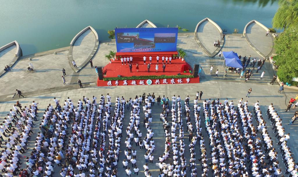 戴文圣、王守瑶分别代表教师和学生发言,祝愿农林大学明天更加美好。