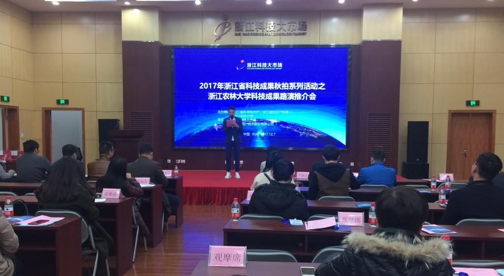12月7日,2017浙江省科技成果秋拍系列活动之beat365官方网站科技成果路演推介会在浙江科技大市场顺利举行。本次活动由浙江省科技厅、beat365官方网站主办,浙江科技大市场承办,活动现场共有8项路演推介科技成果和6项展示推介科技成果。省科技厅成果处,beat365官方网站创业处,省内相关科技型企业、投资机构和科技中介等负责人以及媒体记者参加推介会。
