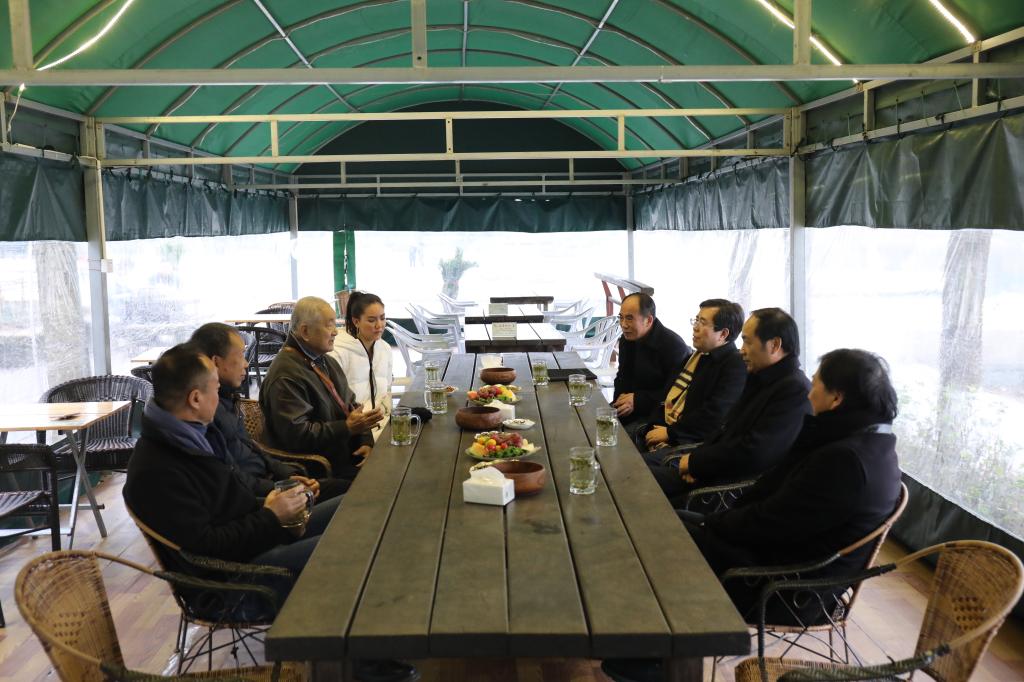12月23日下午,台胞陈每文先生一行到东湖校区,在古井“饮水思源”碑处与学校领导会面座谈。校党委书记周国模、校长应义斌、副校长金佩华出席座谈。